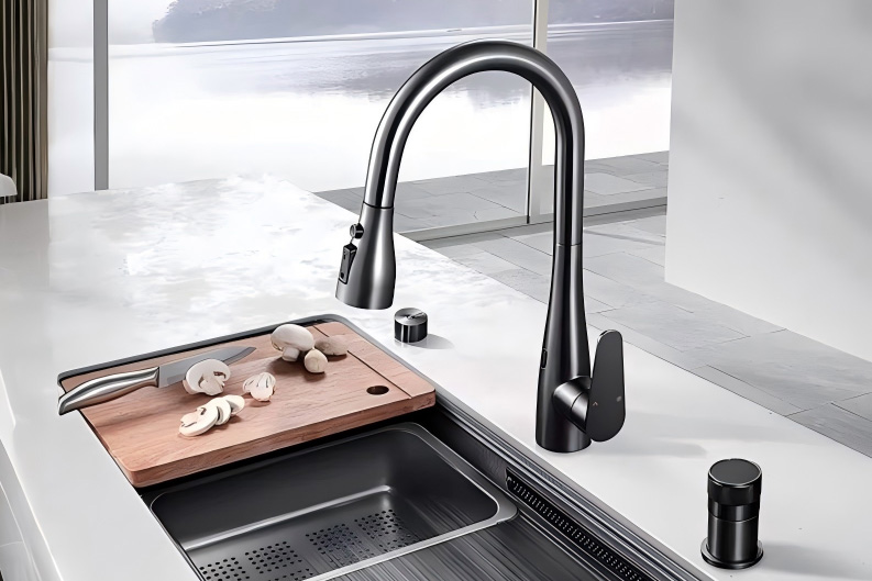 Constructed from solid brass, this kitchen faucet is engineered to withstand the demands of daily use. Brass is exceptionally resistant to corrosion, leaks, and high water pressure, ensuring flawless performance for years to come. Its renowned strength and durability make it a supremely reliable investment for the heart of your home.