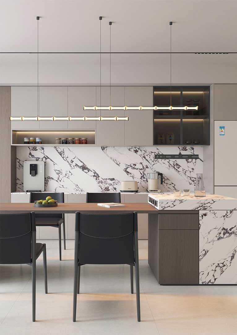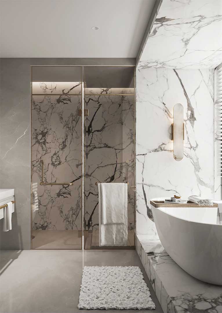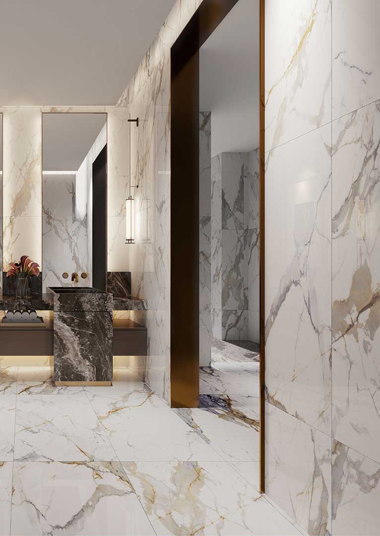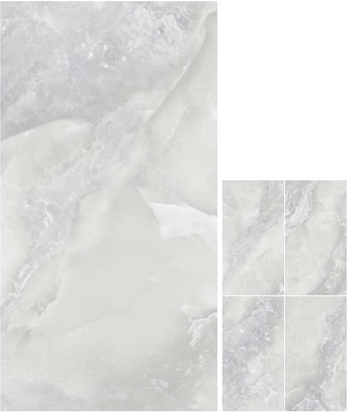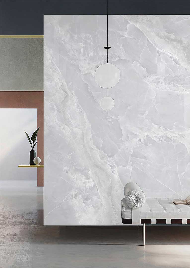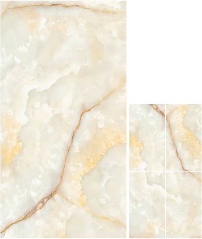 A: We’ve eliminated this common pitfall of imitation materials. Our digital decors are sourced from multiple, high-resolution scans of genuine onyx slabs. We then use variable pattern technology to ensure a wide variety of vein movements across the tiles. When installed, the result is a seamless, organic, and unique composition that flows naturally across your space, with no repeating patterns to break the illusion of real, quarried stone.